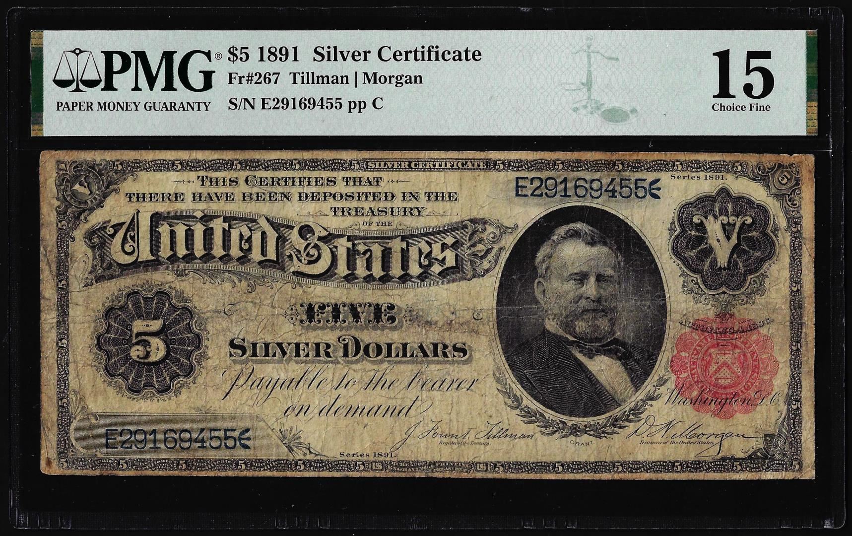 One 1891 $5 Silver Certificate Note Fr.267 Choice Fine 15.