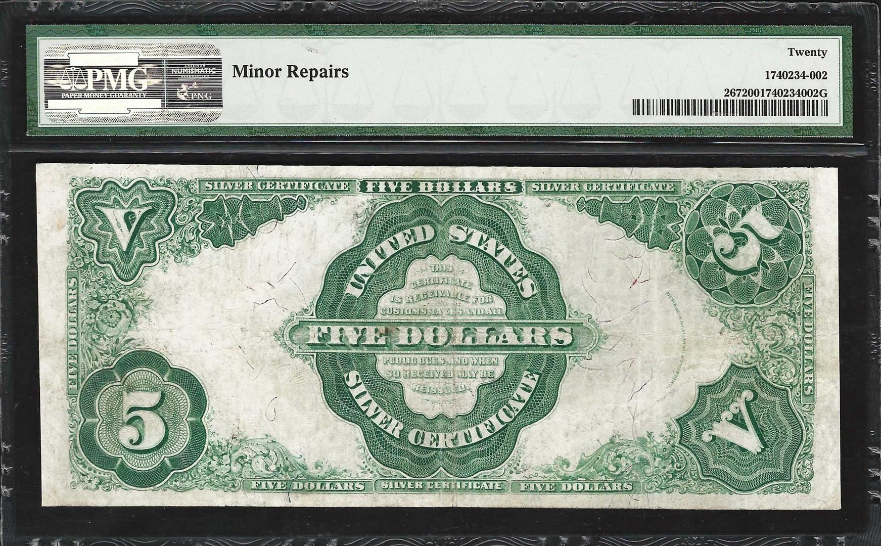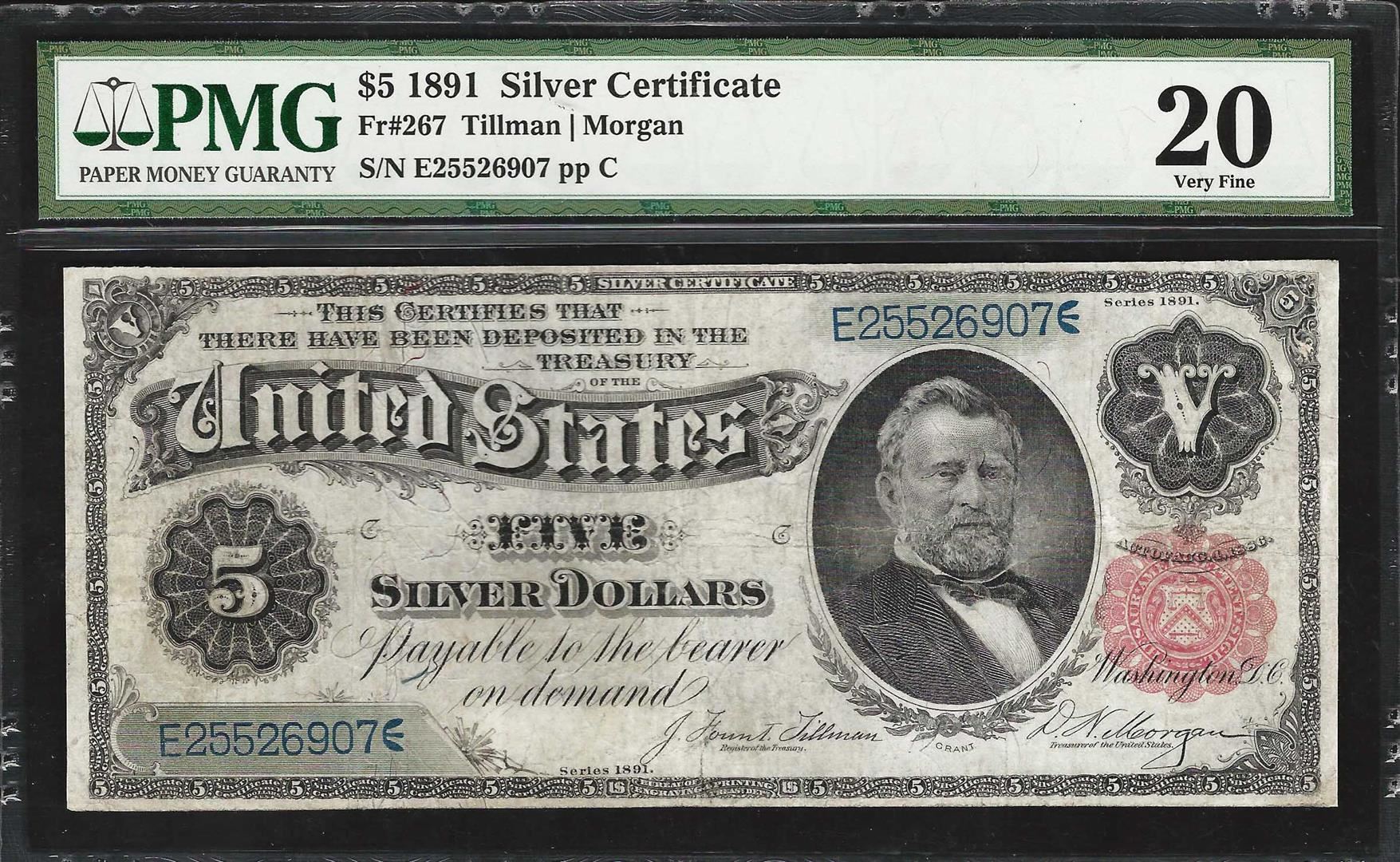 One 1891 $5 Silver Certificate Note Fr.267 PMG Very Fine 20. PMG Certified.