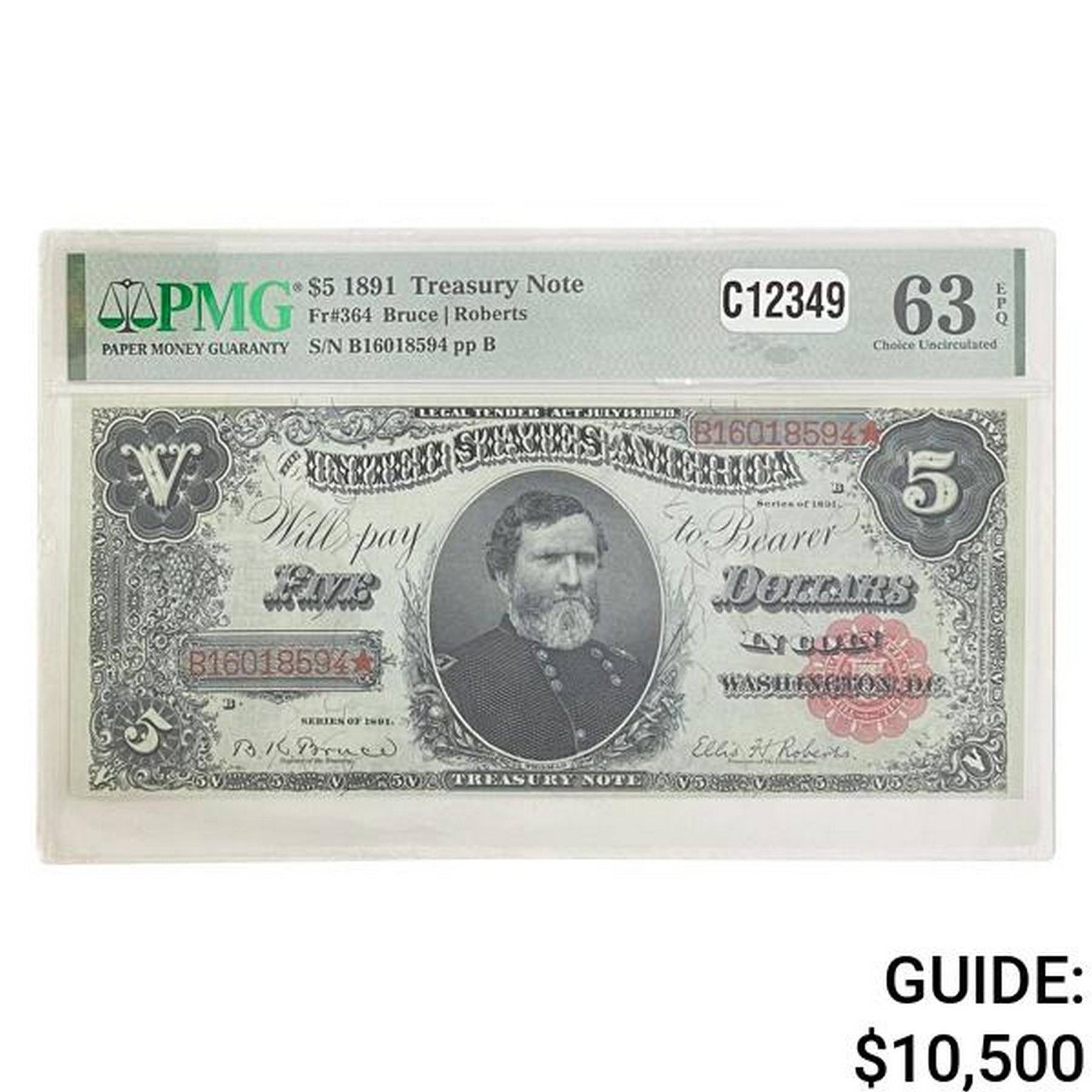 1891 $5 "THOMAS" TREASURY NOTE PMG UNC-63EPQ
