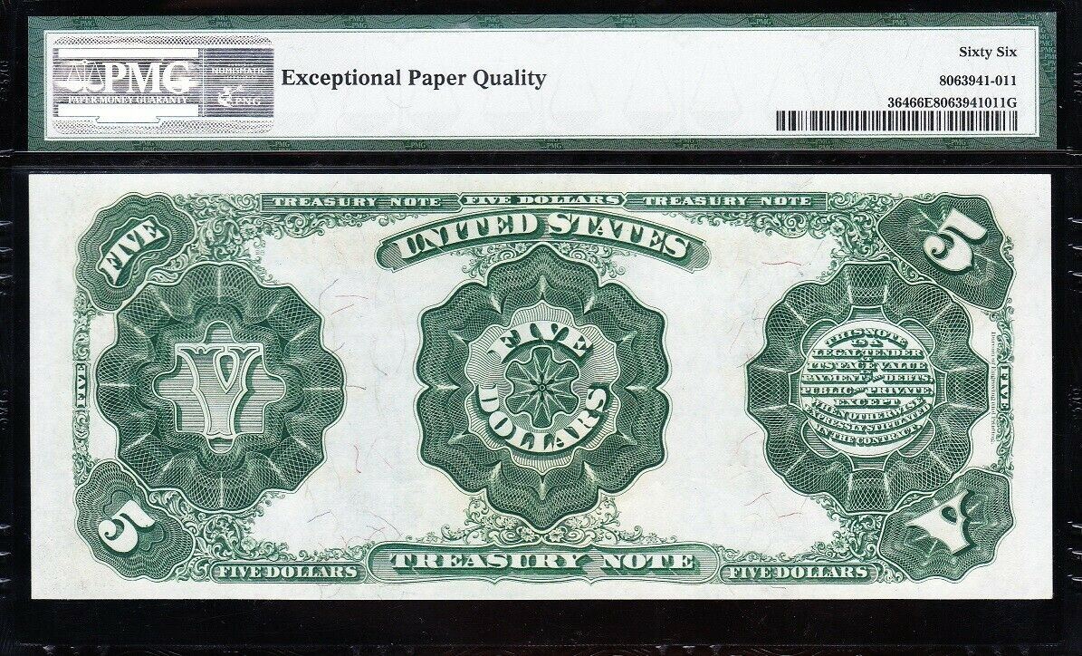 One 1891 $5 Treasury Note PMG 66EPQ.