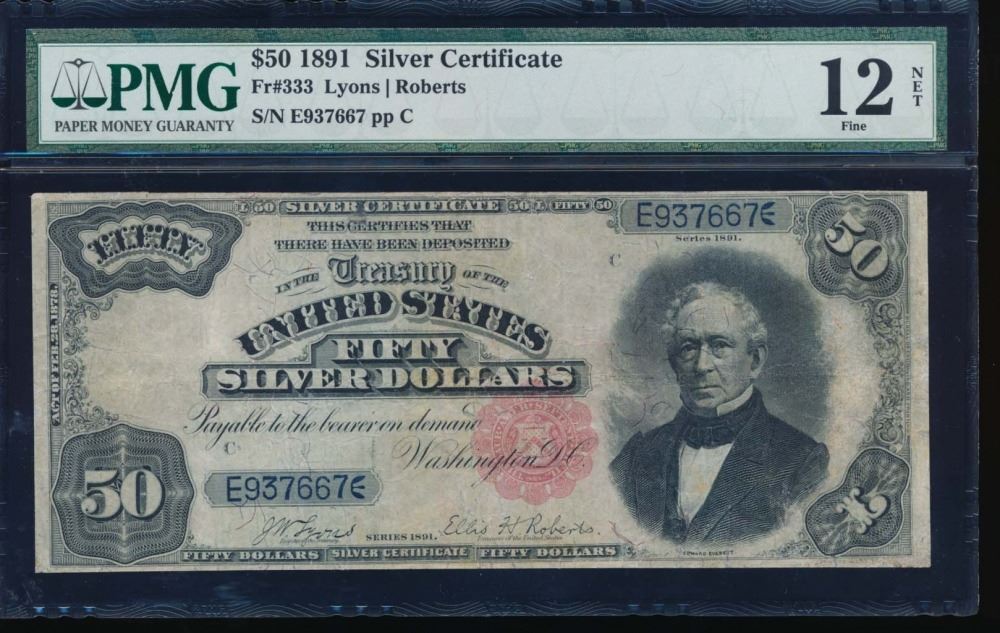 One 1891 $50 Silver Certificate PMG 12NET Fr. 333.