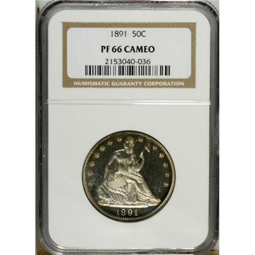 1891 50C PR66 Cameo NGC. Fully struck, except for the
