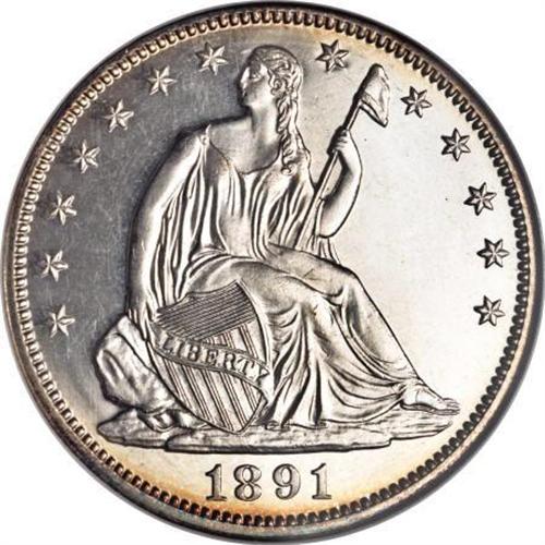 <B>1891 50C PR67 <img src="/images/star.gif" width="10" height="10" alt="" border="0"> Cameo NGC.</B></I> The margins offer light gold toning, while the fields and devices are brilliant. Both major devices are thickly frosted, and the eye appeal is exemplary. The fletchings, claws, and HALF DOL exhibit minute die doubling. A mere 600 proofs were struck. Census: 1 in 67 <img src="/images/star.gif" width="10" height="10" alt="" border="0"> Cameo, 1 finer (3/08).<BR><BR><b>Shipping:</b> Coins & Currency (<a target="_blank" href="http://www.heritageauctions.com/common/shipping.php">view shipping information</a>)