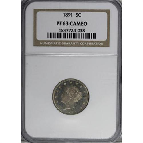 <B>1891 5C PR63 Cameo NGC.</B></I> NGC Census: (5/82). PCGS Population (0/46). (#83889)<BR><BR><b>Shipping:</b> Coins & Currency (<a target="_blank" href="http://www.heritageauctions.com/common/shipping.php">view shipping information</a>)