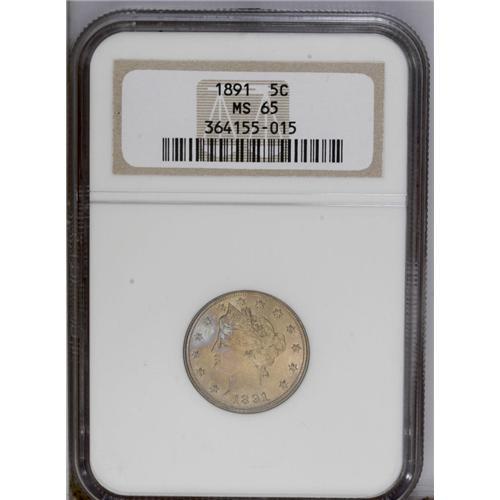 1891 5C MS65 NGC. A fully brilliant golden Gem with ri 1891[5C] MS65 NGC.
