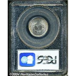 <B>1891<5C> MS65 PCGS.</B></I> Warm pale blue and rose toning bathes satiny surfaces that emit a soft luster. Generally well struck, except that most of the star centers are weak, as are the leaves and kernels of corn immediately to the left of the bow knot. A couple of minor marks are noted at the bottom of the V, and a small planchet flake is seen in the lower right obverse field. This marvelous Liberty nickel should elicit a strong bid. Population: 49 in 65, 6 finer (9/04). <BR><BR><B>Important notice:</B> Heritage usually auctions material at the rate of 200-250 lots per hour. On some occasions eBay Live bid software or the Internet may not be able to keep up with the pace of the auction. We recommend placing a realistic absentee bid now as insurance to avoid disappointment. Occasionally the auctioneer may eliminate or reject an eBay Live bid, and the auctioneer may also reopen a lot after the close of the eBay live bidding (usually because we missed an audience bid), and may reject your bid even if it shows you as the winning bidder. By bidding via eBay Live, you agree that Heritage may award the lot to another bidder at its sole discretion under the circumstances described above or any other reasonable circumstances. Since eBay bids are not shown to us until we open the lot on the floor, we treat those bids just like floor bids. In most cases the floor responds before the eBay bid is presented to us, due to Internet lag time, so for consistency we have made it a policy that floor bids are always considered first over tie eBay live bids. Also please note that all Heritage lots purchased through eBay Live carry a 20% Buyer's Premium. Please make sure you read the Terms and Conditions before you bid.