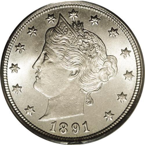 <B>1891<5C> MS66 PCGS.</B></I> Ex: Baxi Collection. Both sides display a peerless, silvery sheen and are extremely well struck in virtually all areas, lacking complete definition on only a couple of the right obverse stars. The vast majority of this workhorse issue was placed into circulation and the small quantity that was saved rarely exhibits this level of sharpness. Population: 10 in 66, 0 finer (4/06).