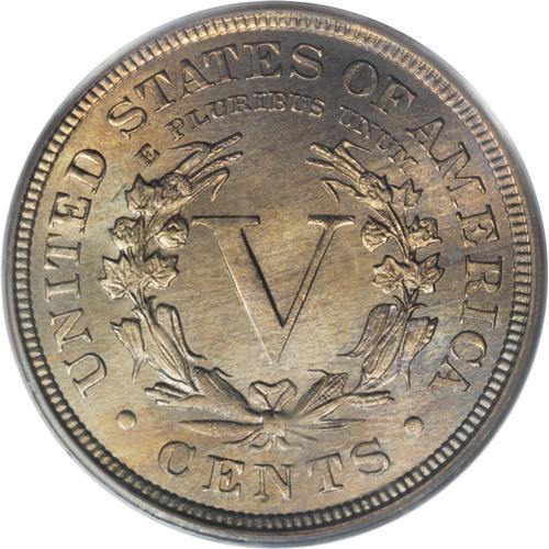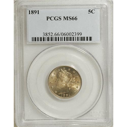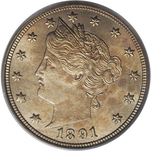 1891 5C MS66 PCGS. Gold-orange patina, slightly less p