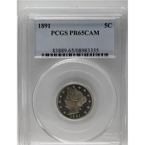 1891 5C PR65 Cameo PCGS. Fully struck with a bright, s