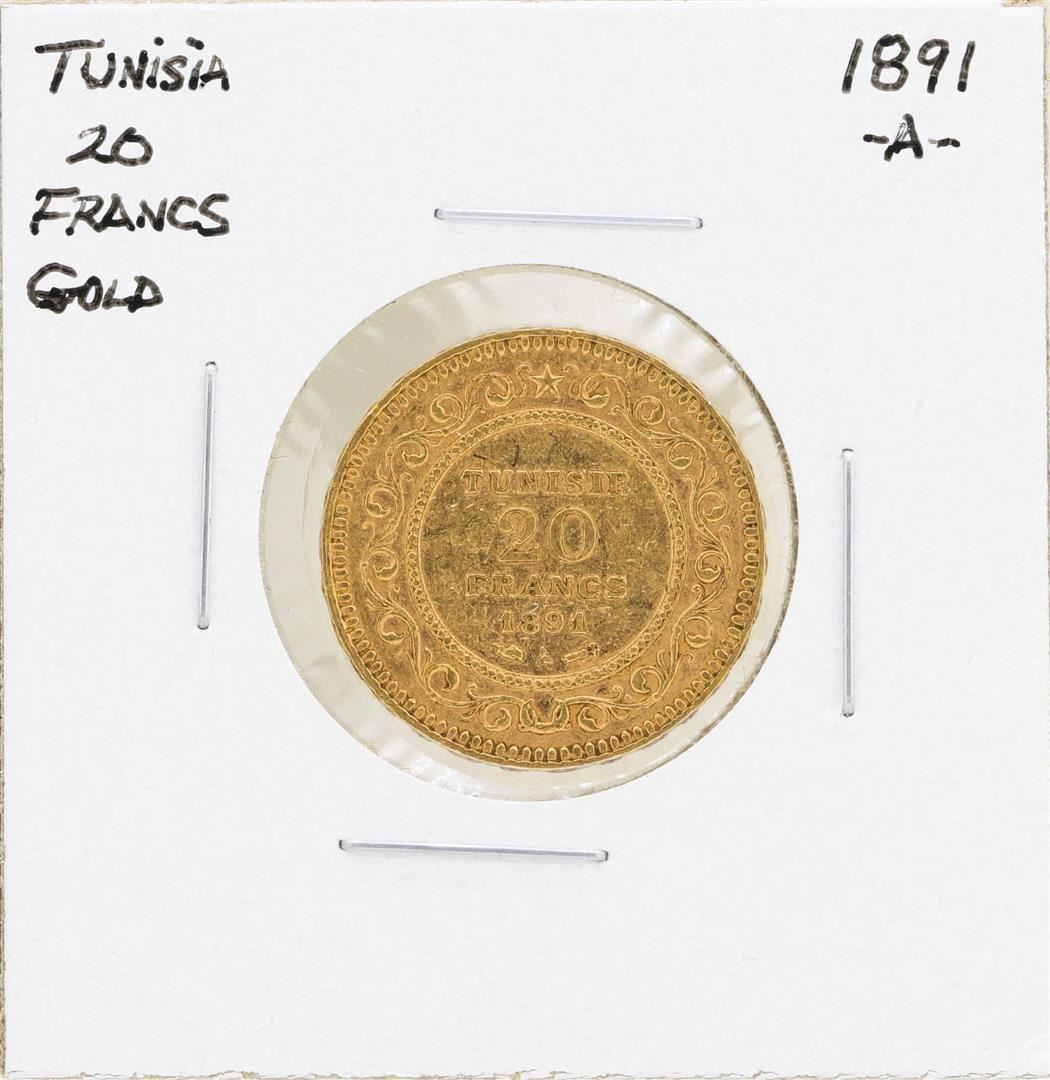 One 1891-A Tunisia 20 Francs Gold Coin.