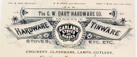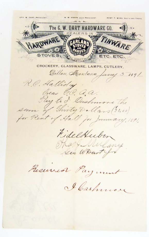 1891 BILLHEAD RECEIPT HARDWARE CO. TINWARE, STOVES, ETC