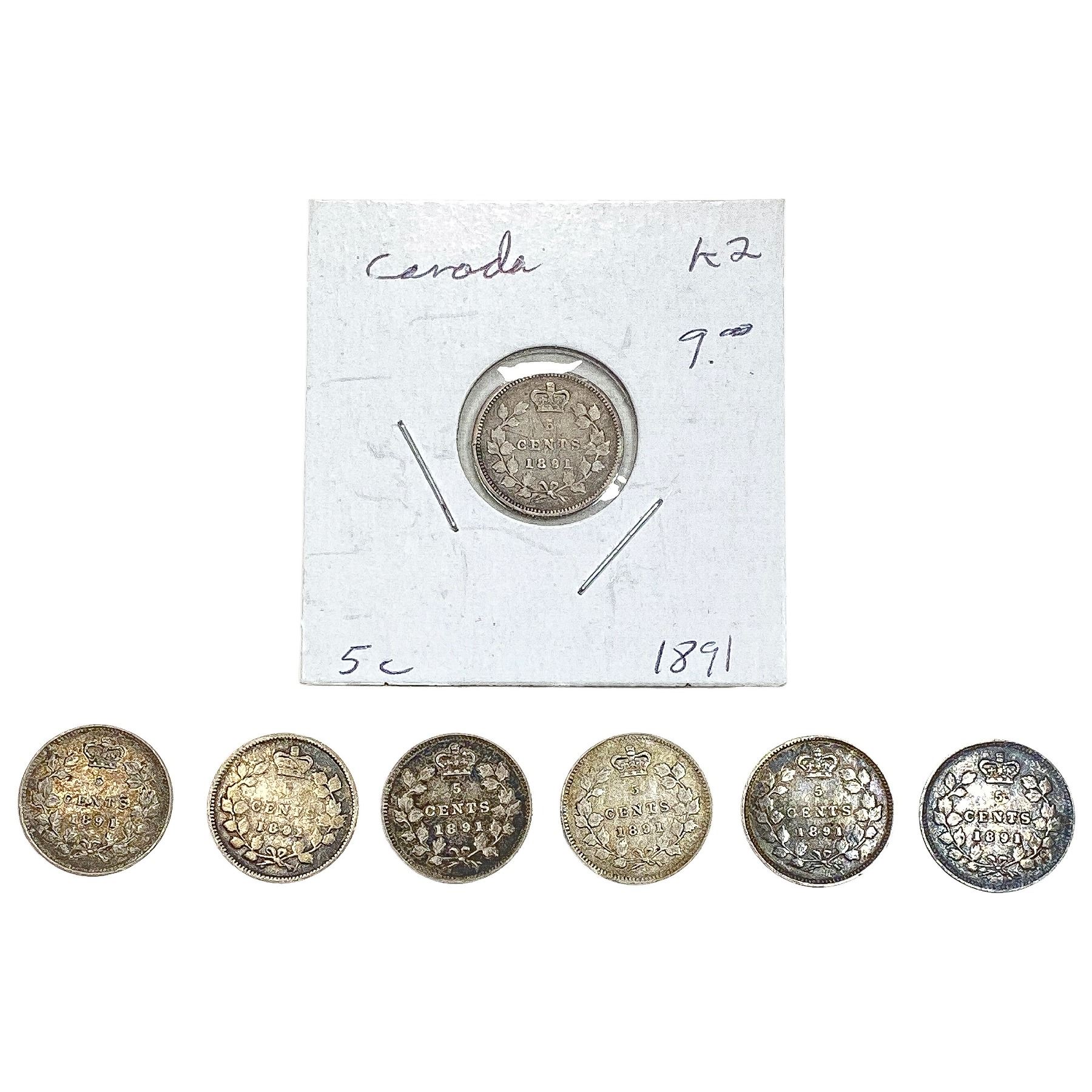 1891 Better Date Canada 5 Cent Silver [7 Coins]