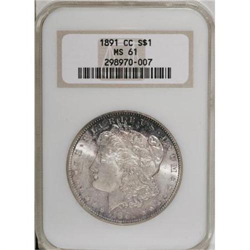 <B>1891-CC $1 MS61 NGC.</B></I> . NGC Census: (436/4582). PCGS Population (781/8973). Mintage: 1,618,000. Numismedia Wsl. Price for NGC/PCGS coin in MS61: $320. (#7206)<BR><BR><B>Coin Engraver:</B> George T. Morgan<BR><BR><b>Shipping:</b> Coins & Currency (<a target="_blank" href="http://www.heritageauctions.com/common/shipping.php">view shipping information</a>)