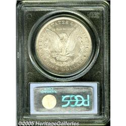 <B>1891-CC<img border='0' src='http://www.heritagecoins.com/images/star.gif' width=10 height=10>$1 MS64 PCGS.</B></I> Well struck and radiantly lustrous, with glowing satiny-frosty surfaces that display attractive champagne-gray toning. The number of wispy marks and superficial luster grazes is so small that the piece would seemingly have to be called high end for the grade, for a near-Gem, by any reasonable standard.