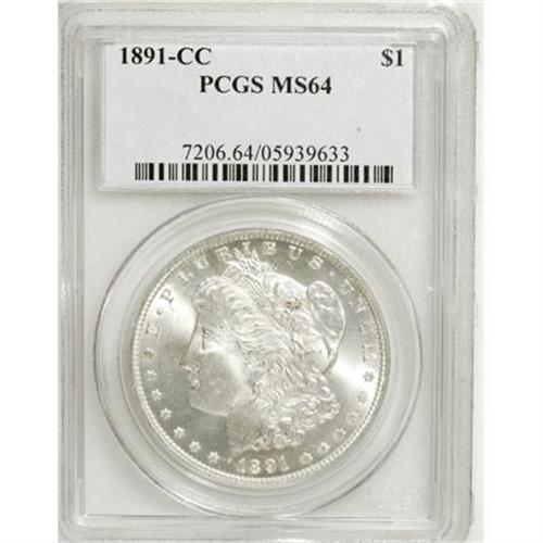 <B>1891-CC $1 MS64 PCGS.</B></I> Well-defined with vibrant luster and excellent eye appeal for the grade, an attractive near-Gem example of this later Carson City issue. The surfaces are untoned save for a small spot of russet and crimson just above the blossoms on Liberty's cap.<BR><BR><B>Coin Engraver:</B> George T. Morgan<BR><BR><b>Shipping:</b> Coins & Currency (<a target="_blank" href="http://www.heritageauctions.com/common/shipping.php">view shipping information</a>)