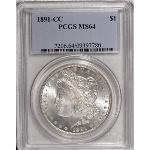 <B>1891-CC $1 MS64 PCGS.</B></I> A shining and solidly struck Choice example of this popular late-date Carson City dollar issue. Delicate rose-inflected haze visits parts of each side, but the surfaces are essentially untoned otherwise.<BR><I>From The Oxford Collection.</B></I><BR><BR><B>Coin Engraver:</B> George T. Morgan<BR><BR><b>Shipping:</b> Coins & Currency (<a target="_blank" href="http://www.heritageauctions.com/common/shipping.php">view shipping information</a>)