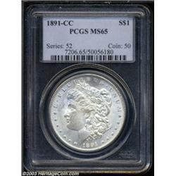 <table><tr><td><TABLE cellSpacing=0 cellPadding=0 width="100%" bgColor=#000000 border=0><TBODY> <TR><TD width="100%"><TABLE cellSpacing=1 cellPadding=3 width="100%" border=0><TBODY><TR><TD width="100%" bgColor=#79735c><FONT face=arial color=#ffffff size=3><B>Description</B> </FONT></TD></TR><TR><TD width="100%" bgColor=#ffffff><FONT face=arial size=2><B>1891-CC $1 MS65 PCGS.</B></I> The percentage of Gem '91-CC Dollars that survives from what is a healthy Mint State population is surprisingly limited. This unusually clean example is basically untoned with shimmering cartwheel luster. </FONT></TD></TR></TBODY></TABLE></TD></TR></TBODY></TABLE><BR><A name=PricesRealized></A><TABLE cellSpacing=0 cellPadding=0 width="100%" bgColor=#000000 border=0><TBODY><TR><TD width="100%"><TABLE cellSpacing=1 cellPadding=3 width="100%" border=0><TBODY><TR><TD width="100%" bgColor=#79735c><A name=PR><FONT face=arial color=#ffffff size=3><B>Previous Prices from Heritage Auctions</B> </FONT></A></TD></TR><TR><TD bgColor=#f6f6ed><TABLE cellSpacing=0 cellPadding=0 width="100%" border=1><TBODY><TR><TD align=middle width="33%"><B>Date</B></TD><TD align=middle width="33%"><B>Service</B></TD><TD align=middle width="33%"><B>Price</B></TD></TR><TR bgColor=whitesmoke><TD width="33%"><B>07/10/2001</B></TD><TD width="33%">PCGS</TD><TD width="33%">$2,150.00</TD></TR><TR bgColor=whitesmoke><TD width="33%"><B>09/20/2003</B></TD><TD width="33%">ANACS</TD><TD width="33%">$1,380.00</TD></TR><TR bgColor=whitesmoke><TD width="33%"><B>05/31/2003</B></TD><TD width="33%">PCGS</TD><TD width="33%">$3,565.00</TD></TR><TR bgColor=whitesmoke><TD width="33%"><B>03/23/2003</B></TD><TD width="33%">ANACS</TD><TD width="33%">$1,955.00</TD></TR><TR bgColor=whitesmoke><TD width="33%"><B>01/11/2003</B></TD><TD width="33%">PCGS</TD><TD width="33%">$2,645.00</TD></TR><TR bgColor=whitesmoke><TD width="33%"><B>11/23/2002</B></TD><TD width="33%">NGC</TD><TD width="33%">$2,185.00</TD></TR><TR bgColor=whitesmoke><TD width="33%"><B>07/30/2002</B></TD><TD width="33%">PCGS</TD><TD width="33%">$2,070.00</TD></TR><TR bgColor=whitesmoke><TD width="33%"><B>01/12/2002</B></TD><TD width="33%">PCGS</TD><TD width="33%">$2,070.00</TD></TR><TR bgColor=whitesmoke><TD width="33%"><B>08/08/2001</B></TD><TD width="33%">PCGS</TD><TD width="33%">$2,300.00</TD></TR><TR bgColor=whitesmoke><TD width="33%"><B>05/31/2001</B></TD><TD width="33%">PCGS</TD><TD width="33%">$1,610.00</TD></TR><TR bgColor=whitesmoke><TD width="33%"><B>05/31/2001</B></TD><TD width="33%">PCGS</TD><TD width="33%">$2,415.00</TD></TR><TR bgColor=whitesmoke><TD width="33%"><B>02/23/2001</B></TD><TD width="33%">NGC</TD><TD width="33%">$1,955.00</TD></TR><TR bgColor=whitesmoke><TD width="33%"><B>01/05/2001</B></TD><TD width="33%">PCGS</TD><TD width="33%">$2,300.00</TD></TR><TR bgColor=whitesmoke><TD width="33%"><B>05/05/2000</B></TD><TD width="33%">PCGS</TD><TD width="33%">$1,955.00</TD></TR><TR bgColor=whitesmoke><TD width="33%"><B>02/11/2000</B></TD><TD width="33%">NGC</TD><TD width="33%">$1,725.00</TD></TR><TR bgColor=whitesmoke><TD width="33%"><B>09/24/1999</B></TD><TD width="33%">PCGS</TD><TD width="33%">$2,530.00</TD></TR><TR bgColor=whitesmoke><TD width="33%"><B>08/07/1998</B></TD><TD width="33%">NGC</TD><TD width="33%">$2,300.00</TD></TR><TR bgColor=whitesmoke><TD width="33%"><B>11/21/1997</B></TD><TD width="33%">NGC</TD><TD width="33%">$1,320.00</TD></TR><TR bgColor=whitesmoke><TD width="33%"><B>02/22/1997</B></TD><TD width="33%">PCGS</TD><TD width="33%">$1,760.00</TD></TR><TR bgColor=whitesmoke><TD width="33%"><B>12/08/1995</B></TD><TD width="33%">NGC</TD><TD width="33%">$1,980.00</TD></TR><TR bgColor=whitesmoke><TD width="33%"><B>09/09/1994</B></TD><TD width="33%">NGC</TD><TD width="33%">$1,650.00</TD></TR><TR bgColor=whitesmoke><TD width="33%"><B>01/05/1994</B></TD><TD width="33%">NGC</TD><TD width="33%">$1,732.50</TD></TR><TR bgColor=whitesmoke><TD width="33%"><B>11/01/1998</B></TD><TD width="33%">PCGS</TD><TD width="33%">$2,530.00</TD></TR><TR bgColor=whitesmoke><TD width="33%"><B>03/01/1999</B></TD><TD width="33%">PCGS</TD><TD width="33%">$2,530.00</TD></TR><TR bgColor=whitesmoke><TD width="33%"><B>08/01/1999</B></TD><TD width="33%">PCGS</TD><TD width="33%">$2,703.00</TD></TR><TR bgColor=whitesmoke><TD width="33%"><B>10/01/1998</B></TD><TD width="33%">PCGS</TD><TD width="33%">$2,530.00</TD></TR><TR bgColor=whitesmoke><TD width="33%"><B>11/01/1999</B></TD><TD width="33%">PCGS</TD><TD width="33%">$2,760.00</TD></TR><TR bgColor=whitesmoke><TD width="33%"><B>01/01/1997</B></TD><TD width="33%">ANACS</TD><TD width="33%">$990.00</TD></TR><TR bgColor=whitesmoke><TD width="33%"><B>05/01/1999</B></TD><TD width="33%">NGC</TD><TD width="33%">$2,875.00</TD></TR><TR bgColor=whitesmoke><TD width="33%"><B>03/01/1998</B></TD><TD width="33%">NGC</TD><TD width="33%">$1,980.00</TD></TR><TR bgColor=whitesmoke><TD width="33%"><B>11/01/1998</B></TD><TD width="33%">NGC</TD><TD width="33%">$3,220.00</TD></TR><TR bgColor=whitesmoke><TD width="33%"><B>02/01/2000</B></TD><TD width="33%">PCGS</TD><TD width="33%">$2,300.00</TD></TR><TR bgColor=whitesmoke><TD width="33%"><B>01/08/2002</B></TD><TD width="33%">PCGS</TD><TD width="33%">$2,875.00</TD></TR><TR bgColor=whitesmoke><TD width="33%"><B>02/18/2002</B></TD><TD width="33%">PCGS</TD><TD width="33%">$1,955.00</TD></TR><TR bgColor=whitesmoke><TD width="33%"><B>01/01/2001</B></TD><TD width="33%">PCGS</TD><TD width="33%">$2,185.00</TD></TR><TR bgColor=whitesmoke><TD width="33%"><B>04/01/1999</B></TD><TD width="33%">PCGS</TD><TD width="33%">$2,805.00</TD></TR><TR bgColor=whitesmoke><TD width="33%"><B>06/01/1998</B></TD><TD width="33%">PCGS</TD><TD width="33%">$2,530.00</TD></TR></TBODY></TABLE></TD></TR><TR><TD bgColor=#ffffff><FONT face=arial size=1 ?>PLEASE NOTE: All prices realized reflect the final hammer price PLUS the buyer's premium in auctions that charge a buyer's premium. Each item has a notation at the top of the listing indicating whether that lot included a 
