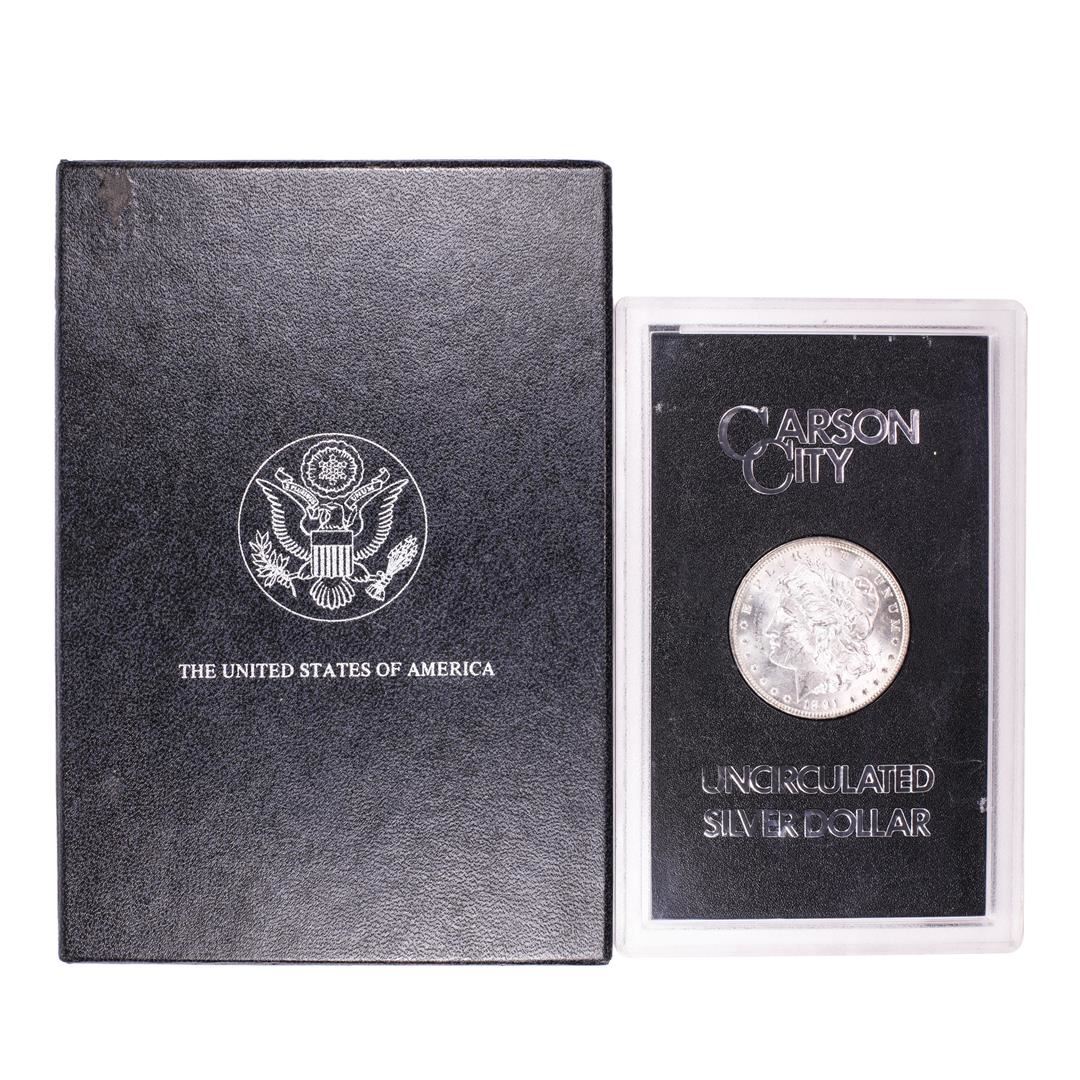 One 1891-CC $1 Morgan Silver Dollar Coin GSA Uncirculated w/ Box.