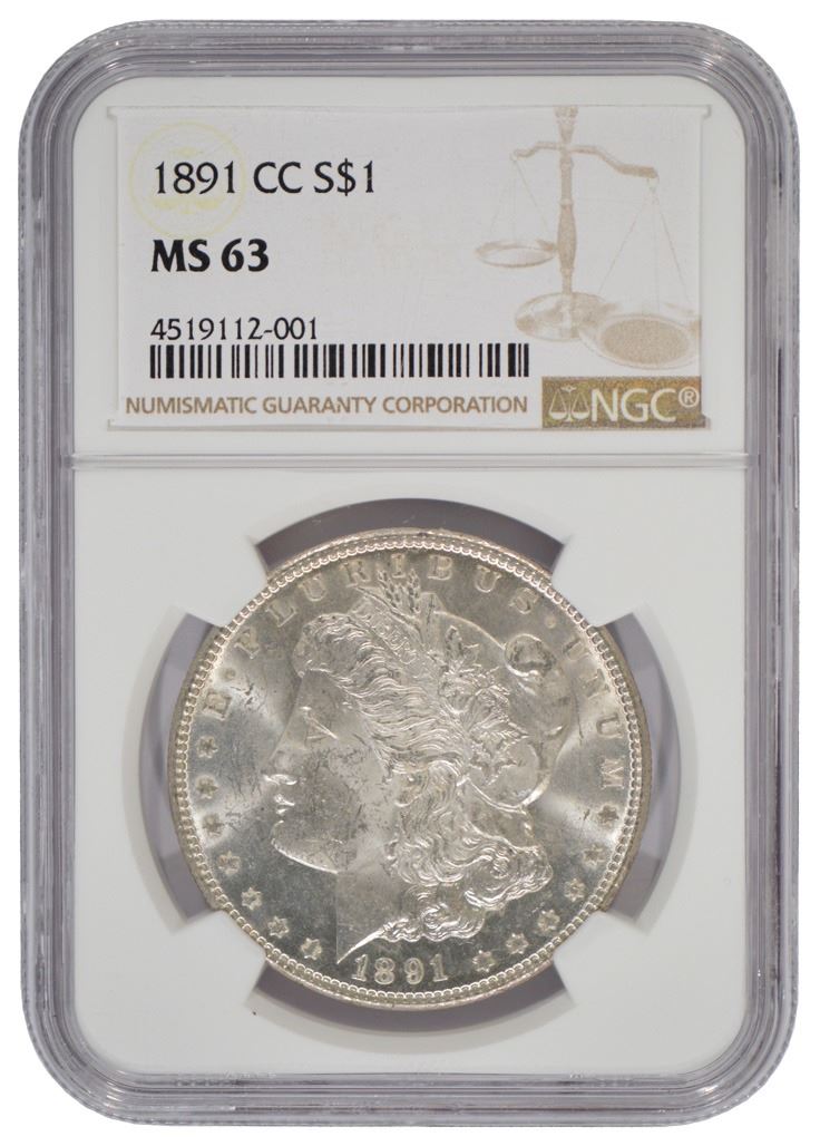 One 1891-CC $1 Morgan Silver Dollar Coin NGC MS63.