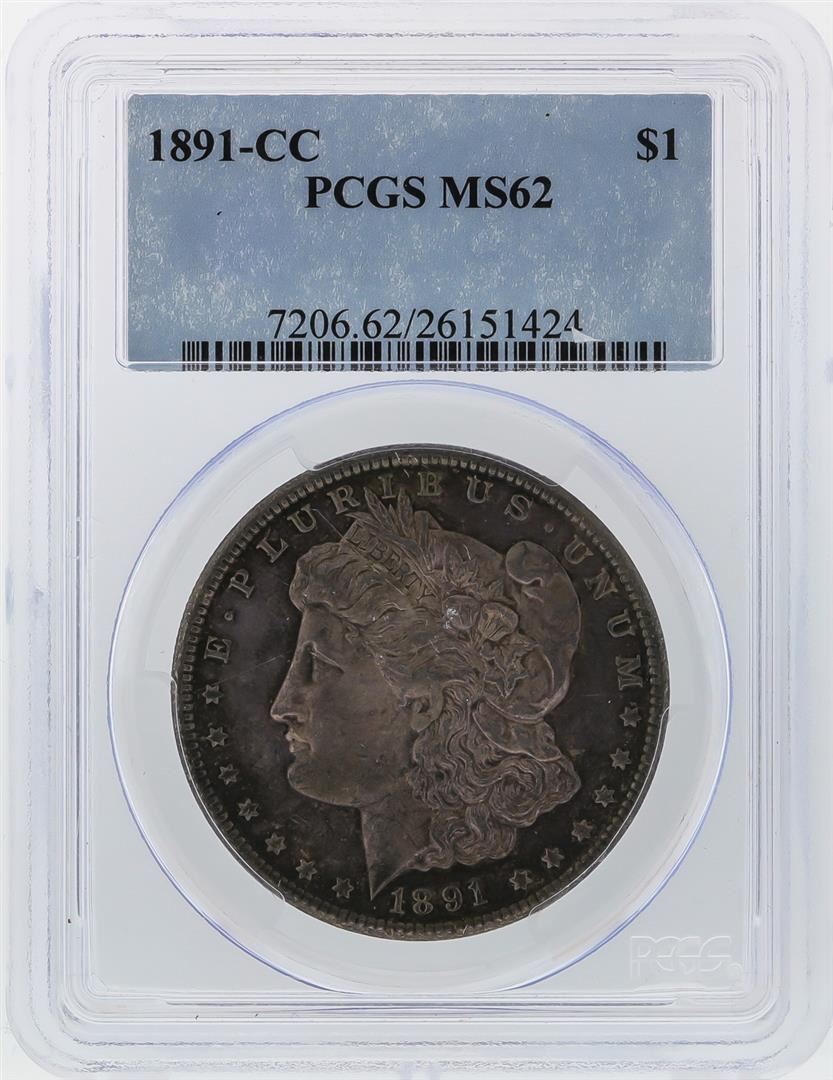 One 1891-CC $1 Morgan Silver Dollar Coin PCGS Graded MS62. PCGS Graded.