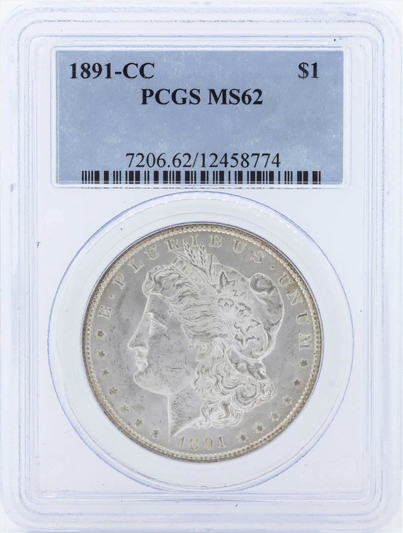 One 1891-CC $1 Morgan Silver Dollar Coin PCGS MS62. PCGS Graded.