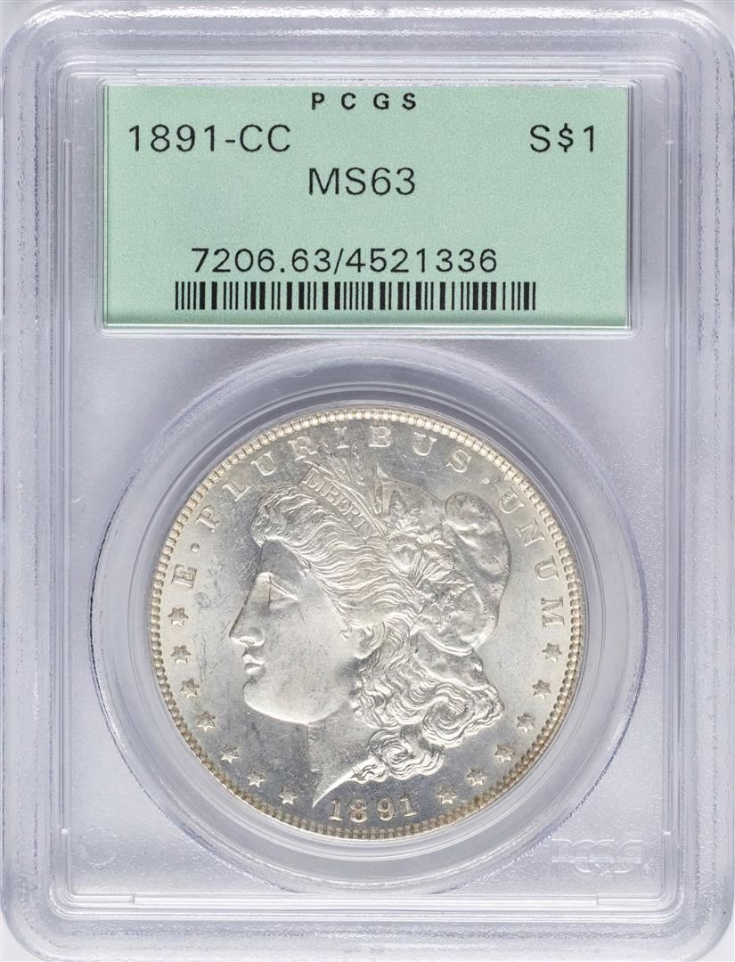 One 1891-CC $1 Morgan Silver Dollar Coin PCGS MS63. PCGS Graded.