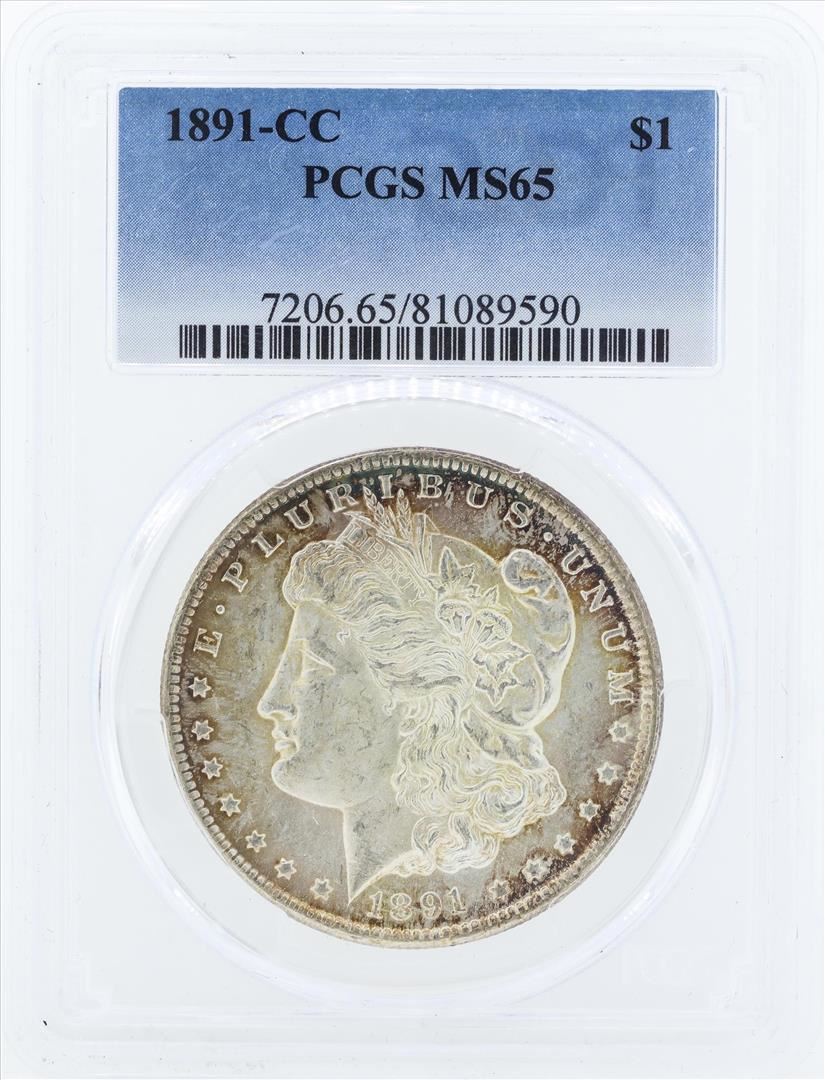 One 1891-CC $1 Morgan Silver Dollar Coin PCGS MS65. PCGS Graded.
