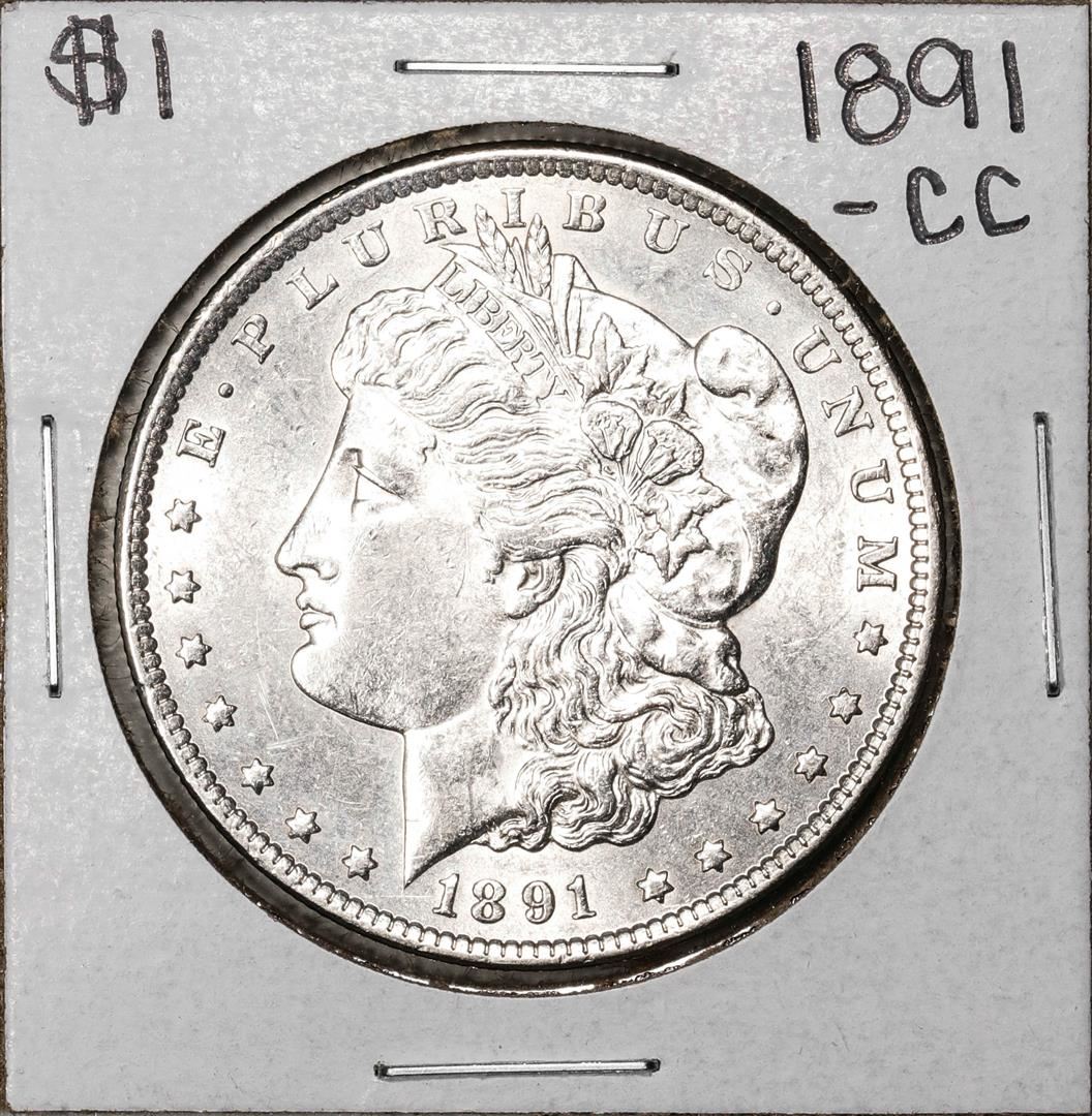 One 1891-CC $1 Morgan Silver Dollar Coin.