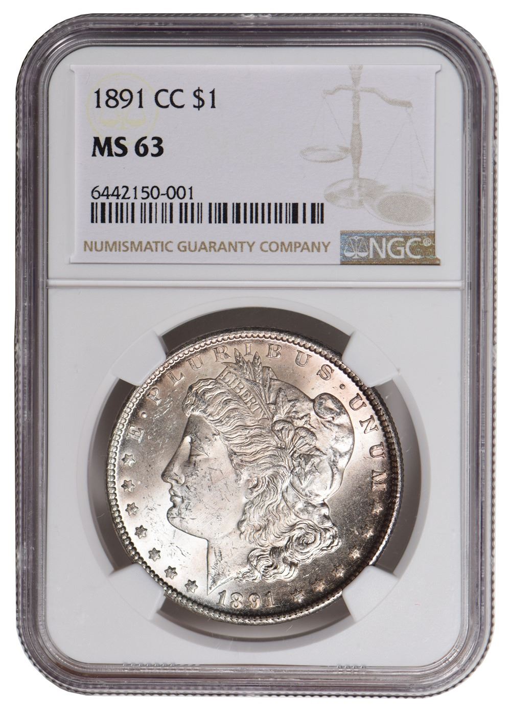 One 1891-CC $1 Morgan Silver Dollar NGC MS63.
