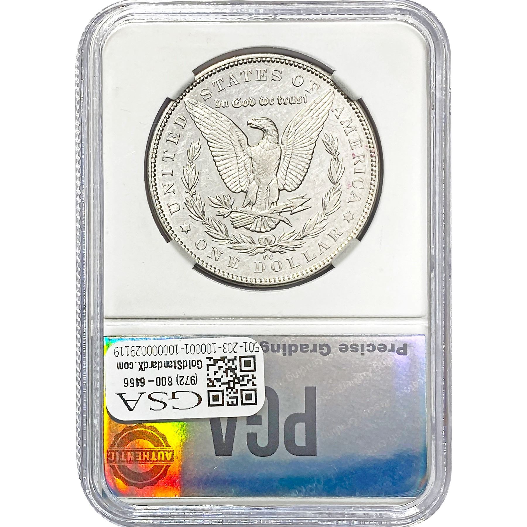 e. Coins sold referencing a third-party grading service are sold “AS IS” without any express or implied warranty, except for a guarantee by GSA that they are genuine. Removal or alteration of the holder, voids all of Bidder’s claims concerning that Product. Certain warranties may be available from the grading services and Bidders are referred to them for further details: Numismatic Guaranty Corporation (NGC), PO Box 4776, Sarasota, FL 34230, www.ngccoin.com/services/writtenguarantee.asp; Professional Coin Grading Services (PCGS), PO Box 9458, Newport Beach, CA 92658, www.pcgs.com/guarantee.html; ANACS, 6555 S. Kenton St., Ste. 303, Englewood, CO 80111; and Independent Coin Grading Co. (ICG), 7901 East Bellview, Ave., Suite 50, Englewood, CO 80111.