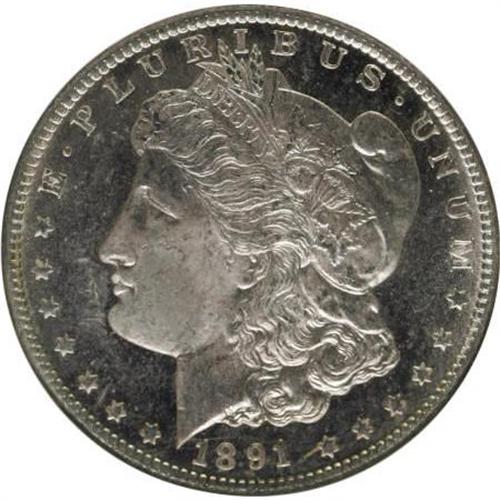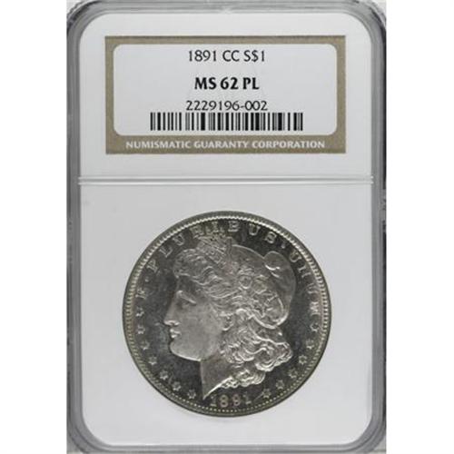 <B>1891-CC $1 MS62 Prooflike NGC.</B></I> NGC Census: (52/166). PCGS Population (136/260). Numismedia Wsl. Price for NGC/PCGS coin in MS62: $400. (#7207)<BR><BR><B>Coin Engraver:</B> George T. Morgan<BR><BR><b>Shipping:</b> Coins & Currency (<a target="_blank" href="http://www.heritageauctions.com/common/shipping.php">view shipping information</a>)