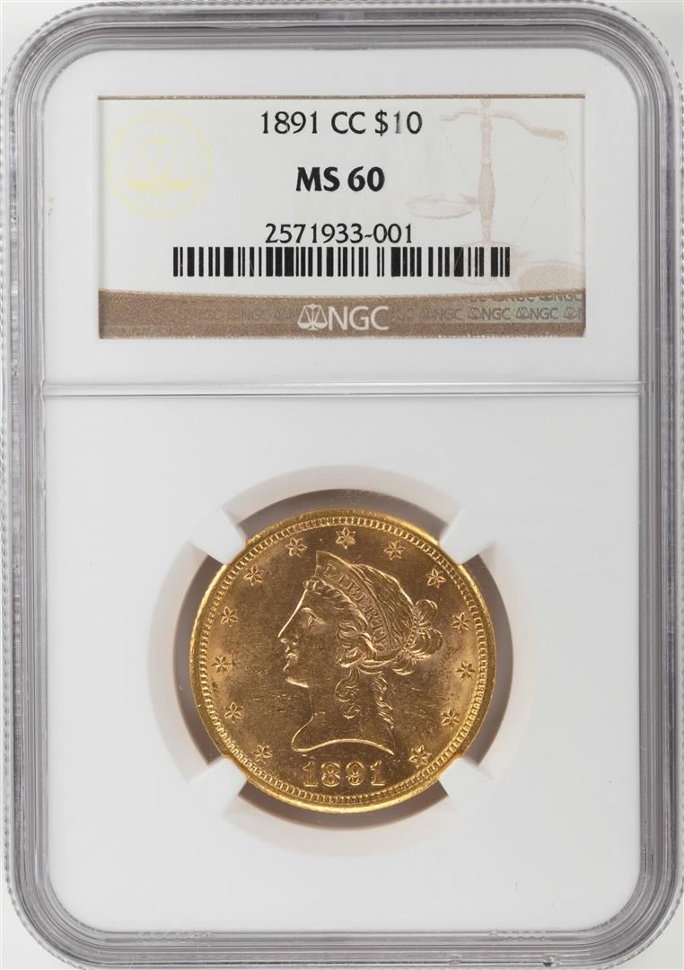 One 1891-CC $10 Liberty Head Eagle Gold Coin NGC MS60. NGC Certified.