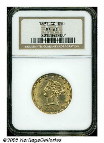 <B>1891-CC<$10> MS61 NGC.</B></I> An attractive and lustrous Carson City Eagle, problem-free and worthy of a quality Carson City type set.