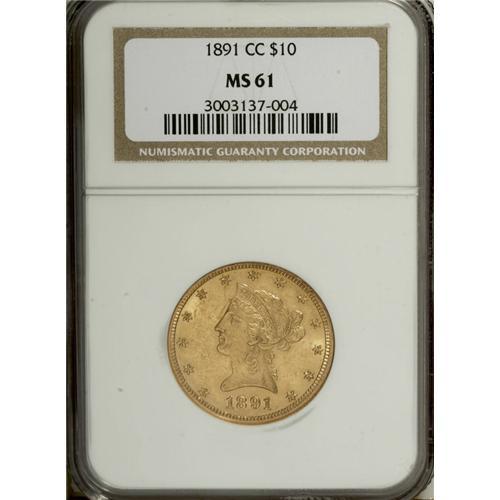 1891-CC $10 MS61 NGC. Breen-7035, FS-501. A popular Ca