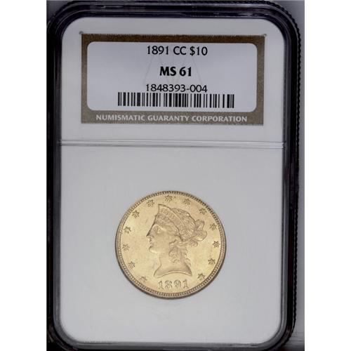 1891-CC $10 MS61 NGC. Flashy luster is the hallmark of