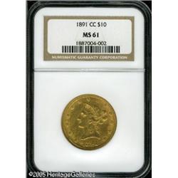 <B>1891-CC $10 MS61 NGC.</B></I> Fully lustrous and bright with a nice strike and a number of small contact marks, particularly on the obverse. Lot:8790