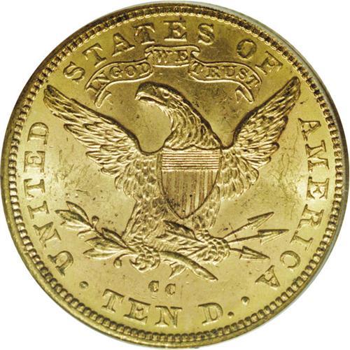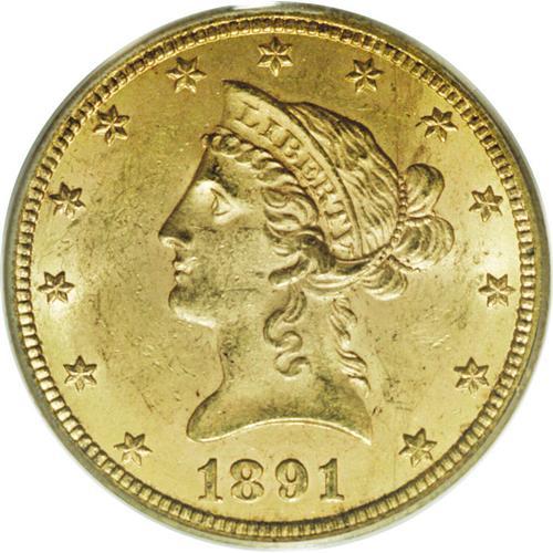 <B>1891-CC $10 MS62 PCGS.</B></I> This original and intricately struck Carson City ten has pleasing luster, and is limited in grade by only a couple of subtle marks west of Liberty's ear. The many type set collectors of Carson City gold coins are drawn toward the 1891-CC eagle, since it is the only issue of the denomination from the famous Western mint that is both affordable and obtainable in Mint State.<BR><BR><b>Shipping:</b> Coin/Currency (<a target="_blank" href="http://www.heritageauctions.com/common/shipping.php">view shipping information</a>)