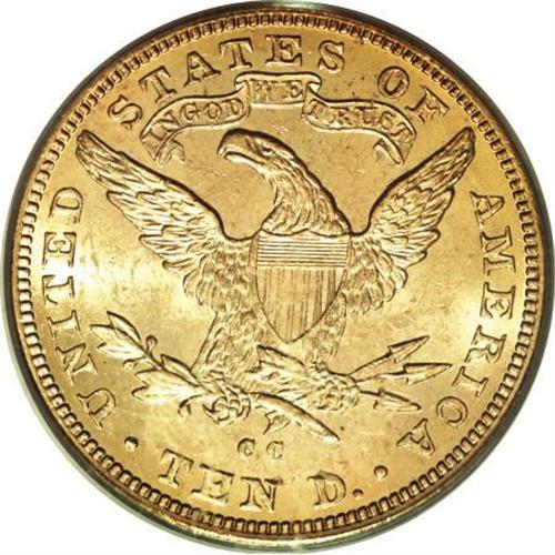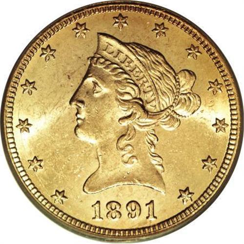 <B>1891-CC $10 MS63 PCGS.</B></I> The relatively enormous mintage exceeding 100,000 pieces for the Carson City Mint makes this issue generally available, and fortunately it is also one that is well-produced. This example exhibits splendid orange-gold, lustrous surfaces that show only a few tiny abrasions consistent with the Select Uncirculated grade. A nice, high-end coin. PCGS has certified only three pieces finer (3/08).<BR><BR><B>Coin Engraver:</B> Christian Gobrecht<BR><BR><b>Shipping:</b> Coins & Currency (<a target="_blank" href="http://www.heritageauctions.com/common/shipping.php">view shipping information</a>)