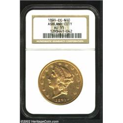1891-CC $20 AU55 NGC. Winter 1-A, the only known dies. Judging by original mintage figures, the Cars