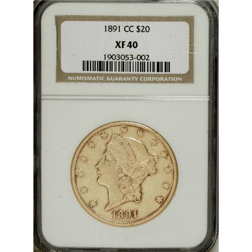 1891-CC $20 XF40 NGC. The minuscule mintage of only 5,