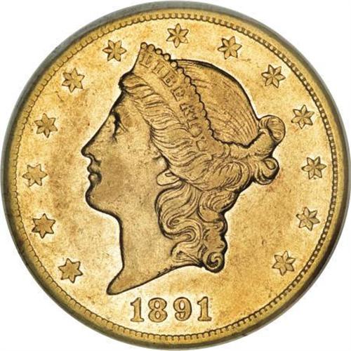 <B>1891-CC $20 XF40 NGC.</B></I> Even wear is seen over each side of this scarce, low mintage CC twenty. This piece has bright fields and the coin shows even reddish color over each side. A bit weakly defined on the obverse stars. The 1891-CC has a mintage of only 5,000 pieces and is rated second in overall rarity of the 19 issues in the series. <BR><BR><B>Coin Engraver:</B> James B. Longacre<BR><BR><b>Shipping:</b> Coins & Currency (<a target="_blank" href="http://www.heritageauctions.com/common/shipping.php">view shipping information</a>)
