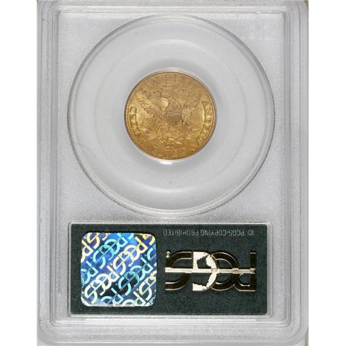 <B>1891-CC $5 AU58 PCGS.</B></I> Boldly struck and lacking obvious wear, this piece is satiny and free of sizeable marks, with bits of verdigris clinging to some of the outer devices. Housed in a green label PCGS holder.<BR><BR><b>Shipping:</b> Coins & Currency (<a target="_blank" href="http://www.heritageauctions.com/common/shipping.php">view shipping information</a>)