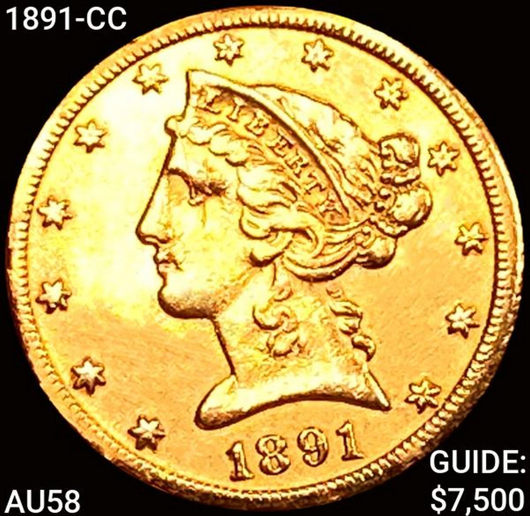 1891-CC $5 Gold Half Eagle CHOICE AU
