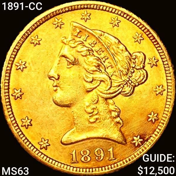 1891-CC $5 Gold Half Eagle CHOICE BU