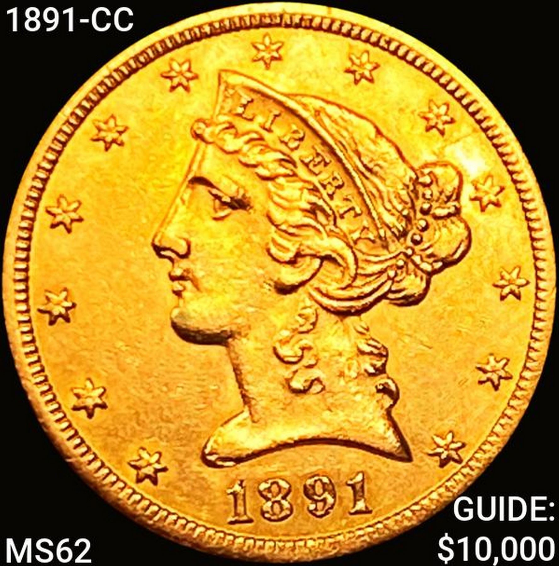 1891-CC $5 Gold Half Eagle CLOSELY UNCIRCULATED