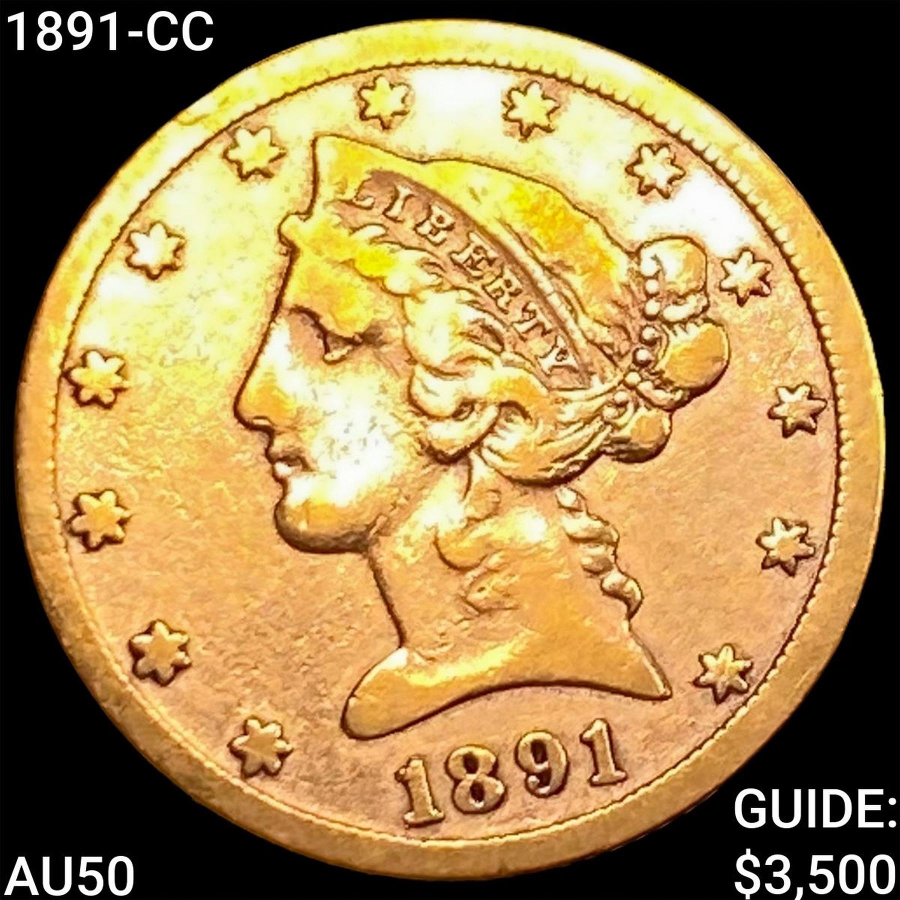 1891-CC $5 Gold Half Eagle CLOSELY UNCIRCULATED