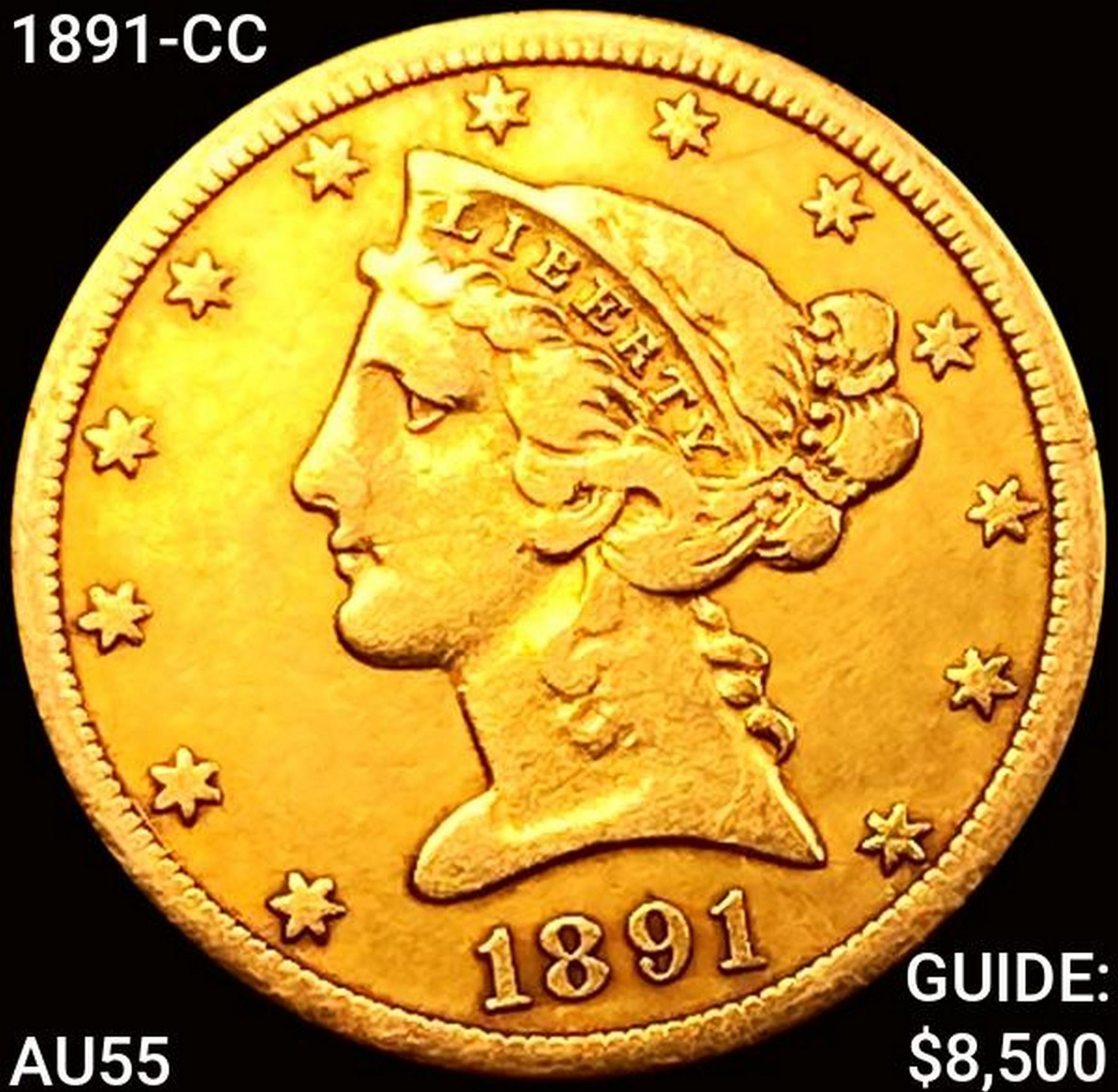 1891-CC $5 Gold Half Eagle HIGH GRADE