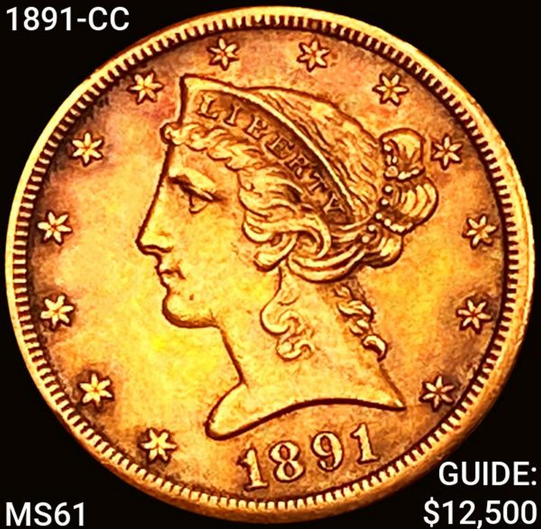 1891-CC $5 Gold Half Eagle UNCIRCULATED