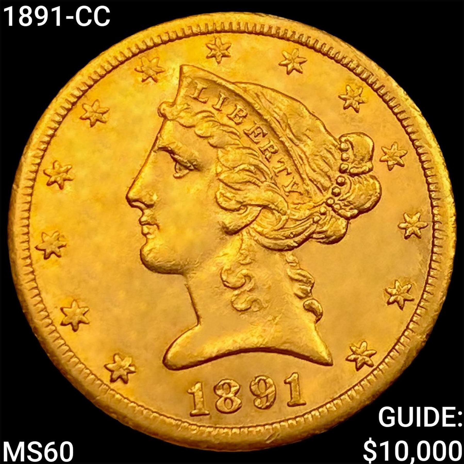 1891-CC $5 Gold Half Eagle UNCIRCULATED