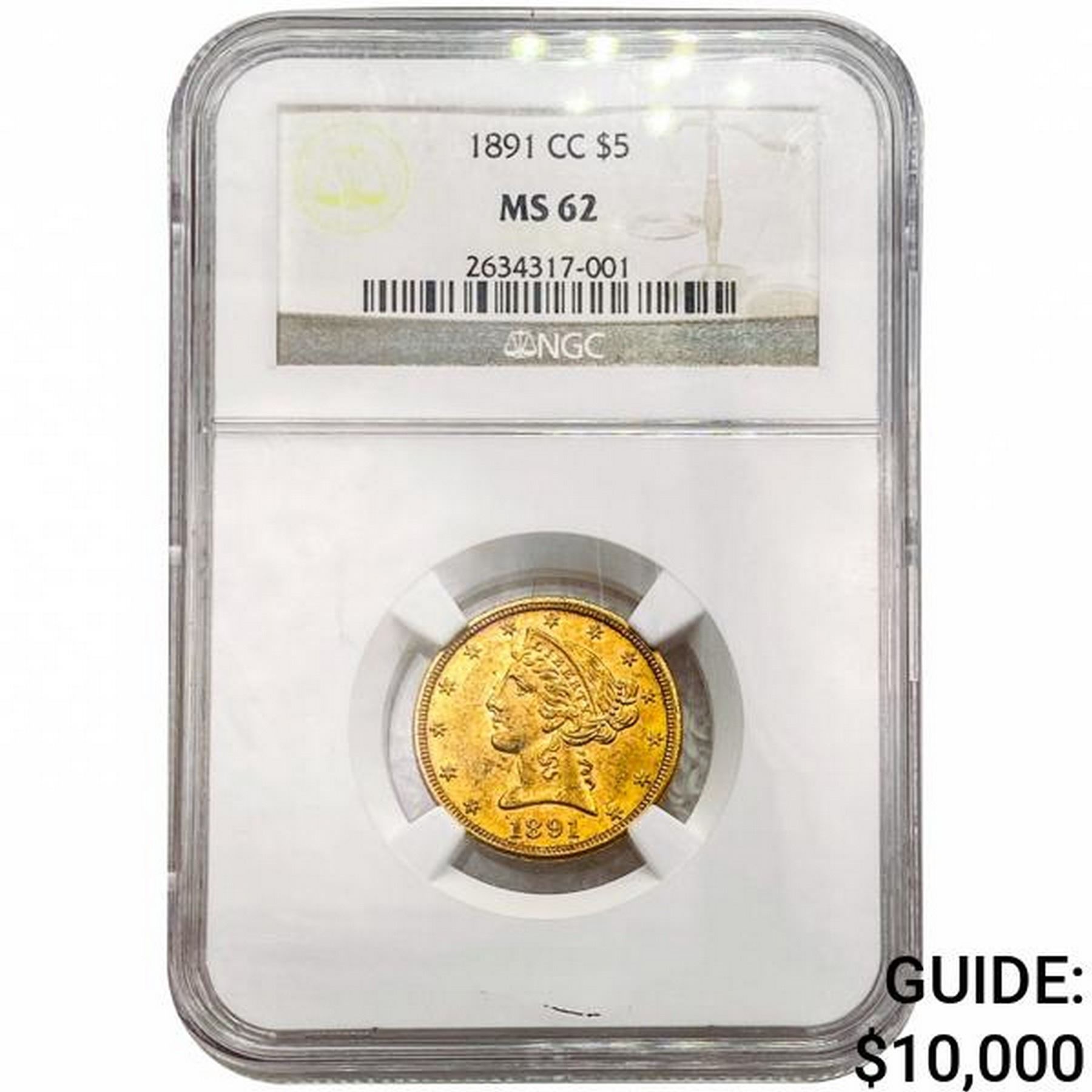 1891-CC $5 LH Half Eagle - Gold - NGC MS62